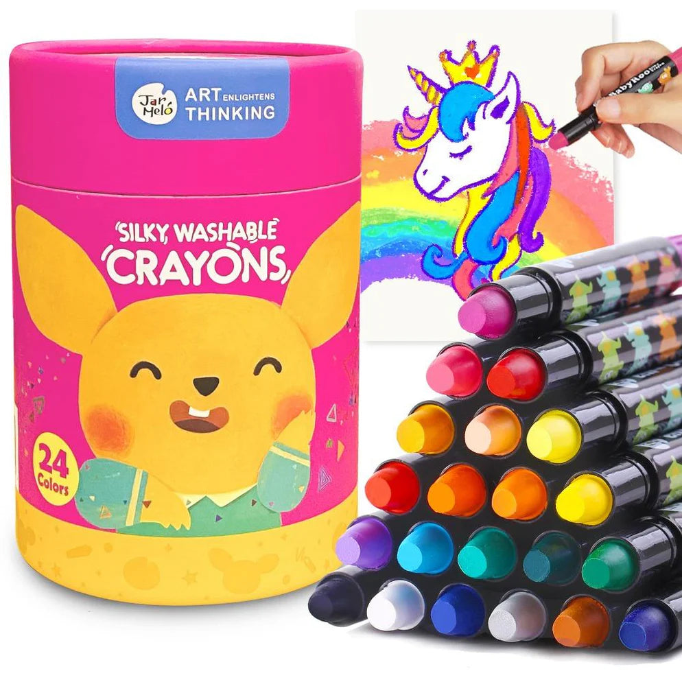 • Jar Melo washable silky crayons packs are Tasteless, Safe and Non Toxic, food grade pigment makes you feel relieved,don't worry about babies put it into mouth. And no irritation to children's skin,freely paint on faces, hands or arms for parties or games.Acquired CPSC certificates of US & CE certificates of Europe.