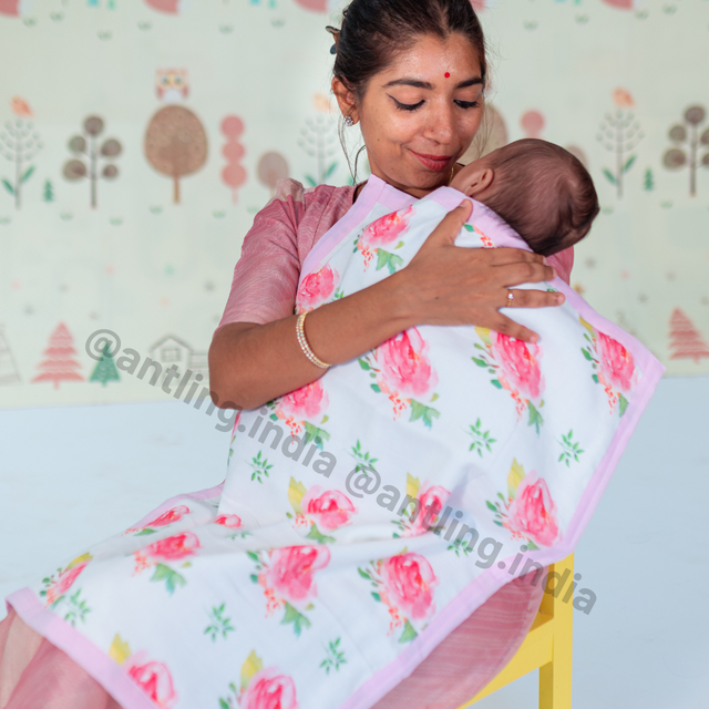 Premium 4 Layers Muslin Holding Towel - Rose Garden