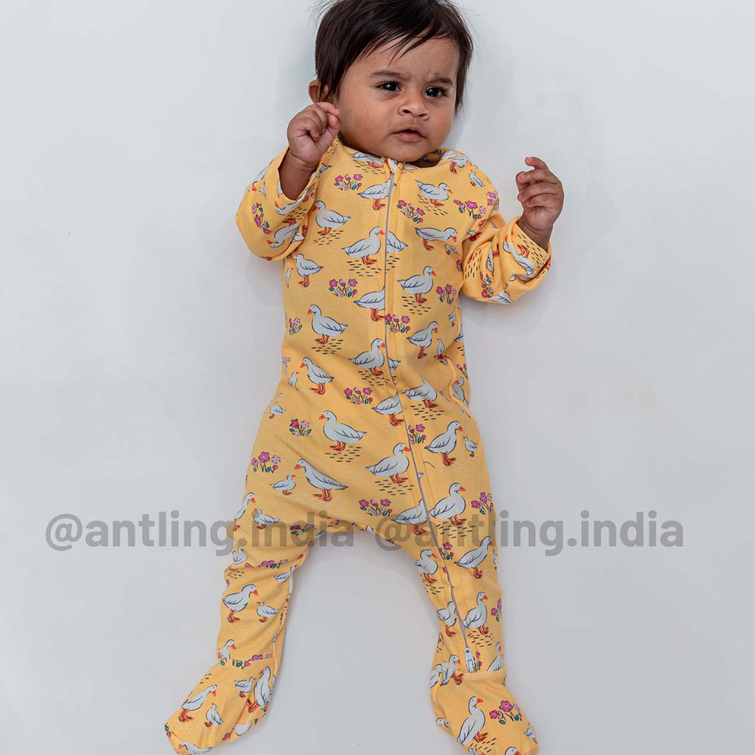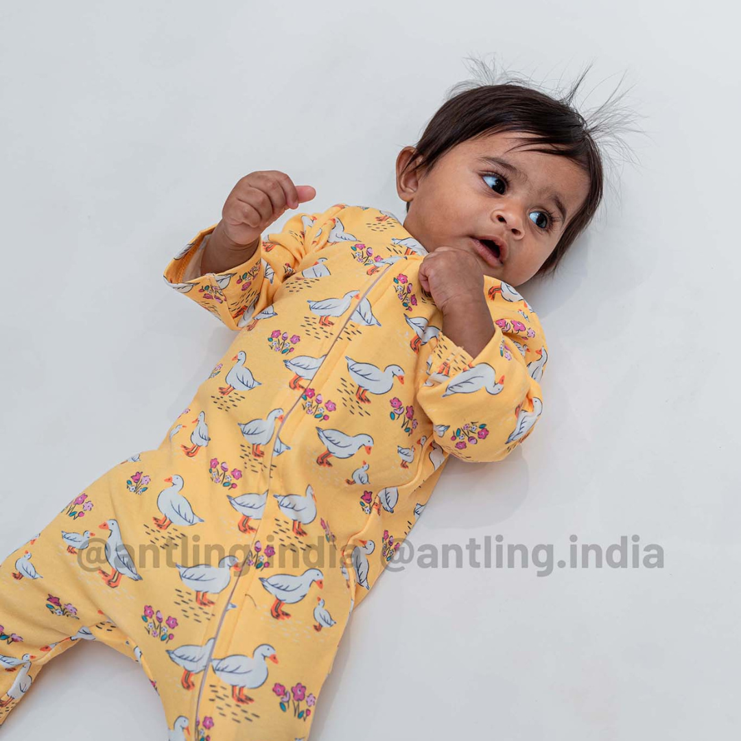 Antling baby footed rompers are onesies designed for babies who habitually kick off their blankets while asleep. These footed rompers cover the baby from neck to toe. They keep the baby so warm that there is no need for extra coverings or wrappings! The soft infant rompers are also tailored with a zipper to ease nappy changing. They also keep the baby comfortable around the clock.