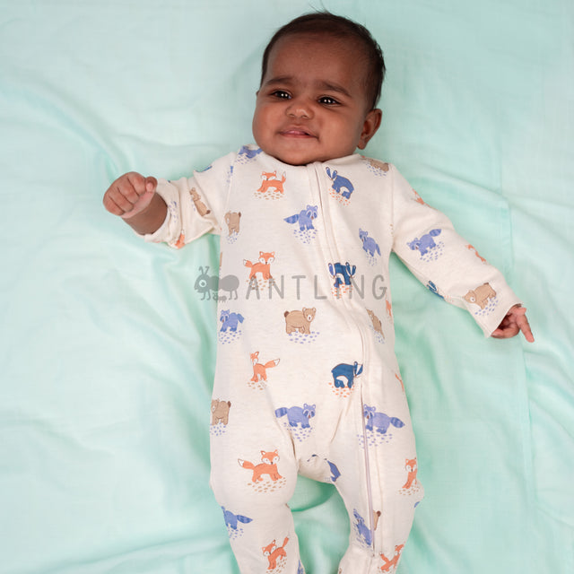 Antling baby footed rompers are onesies designed for babies who habitually kick off their blankets while asleep. These footed rompers cover the baby from neck to toe. They keep the baby so warm that there is no need for extra coverings or wrappings! The soft infant rompers are also tailored with a zipper to ease nappy changing. They also keep the baby comfortable around the clock.