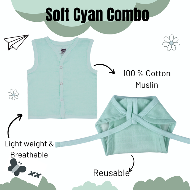 Newborn Muslin Jabla & Nappy Combo - Soft Cyan
