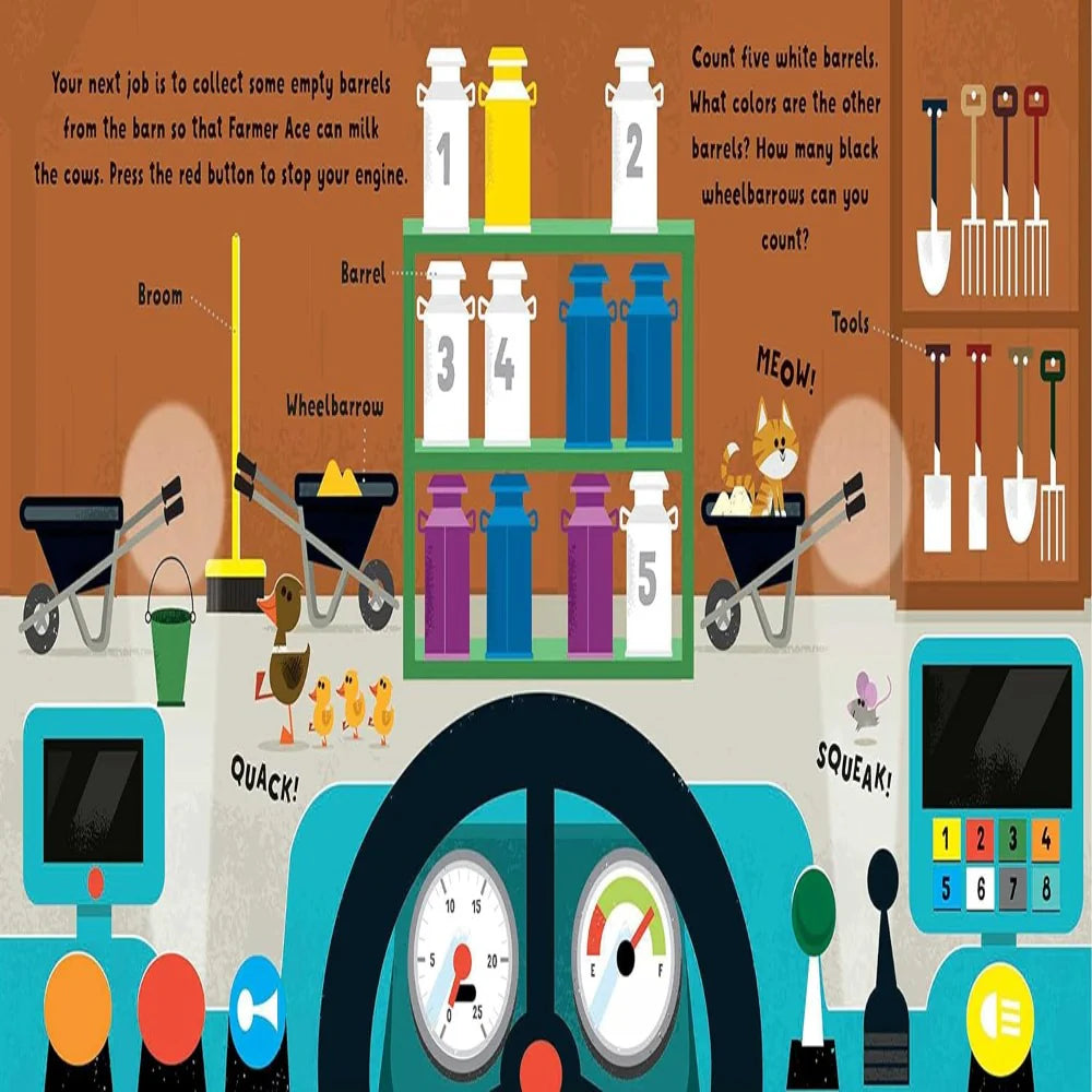 (1) I'm The Tractor Driver :- Vehicle drivers on a farm have a very important job. They are in charge of big machines that carry animals, lift hay bales, and harvest crops. I'm the Tractor Driver puts the reader in charge with a dashboard design across the bottom of each page children will love using their imagination to pretend to use the vehicle’s controls. The narrative is embedded with key early learning concepts, and each book ends with a sense of achievement as the task is completed.