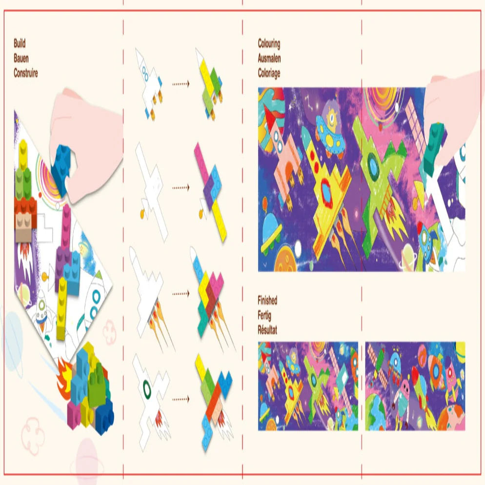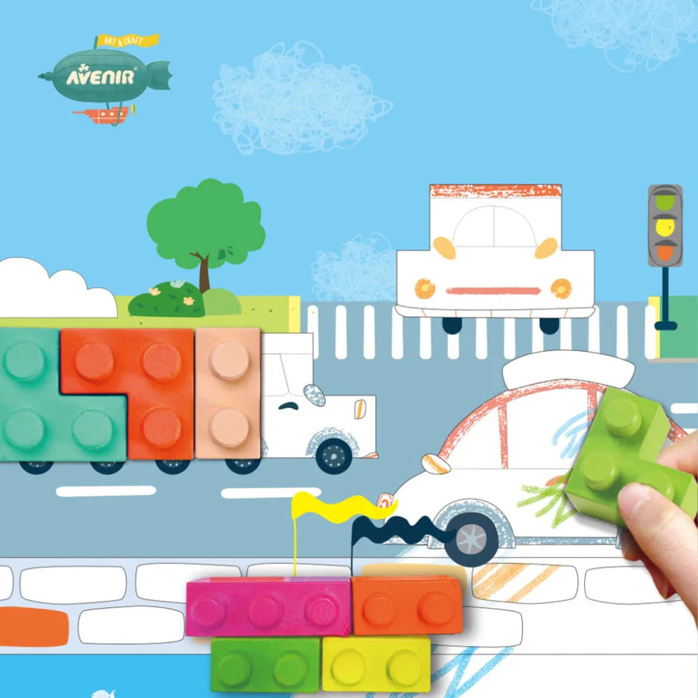 There are 12 colours in 3 different construction block shapes of crayons, plus 2 -themed colouring sheets in each gift box. Kids can combine the crayons like puzzles and construction blocks to add even more fun to colouring time!