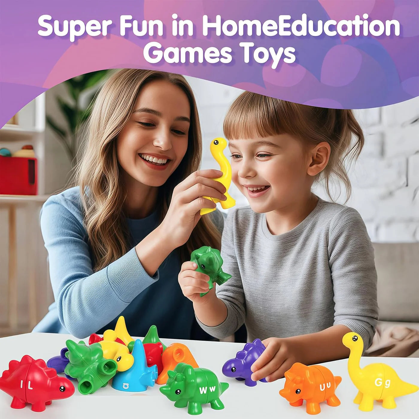 ๐๐ฅ๐ฉ๐ก๐๐๐๐ญ ๐๐ข๐ง๐จ๐ฌ๐๐ฎ๐ซ ๐๐จ๐ฒ๐ฌ ๐๐๐ญ ๐๐จ๐ซ ๐๐ข๐๐ฌ: Our Alphabet Matching Dino toy Set includes 26 PCS double-sided dinosaurs.