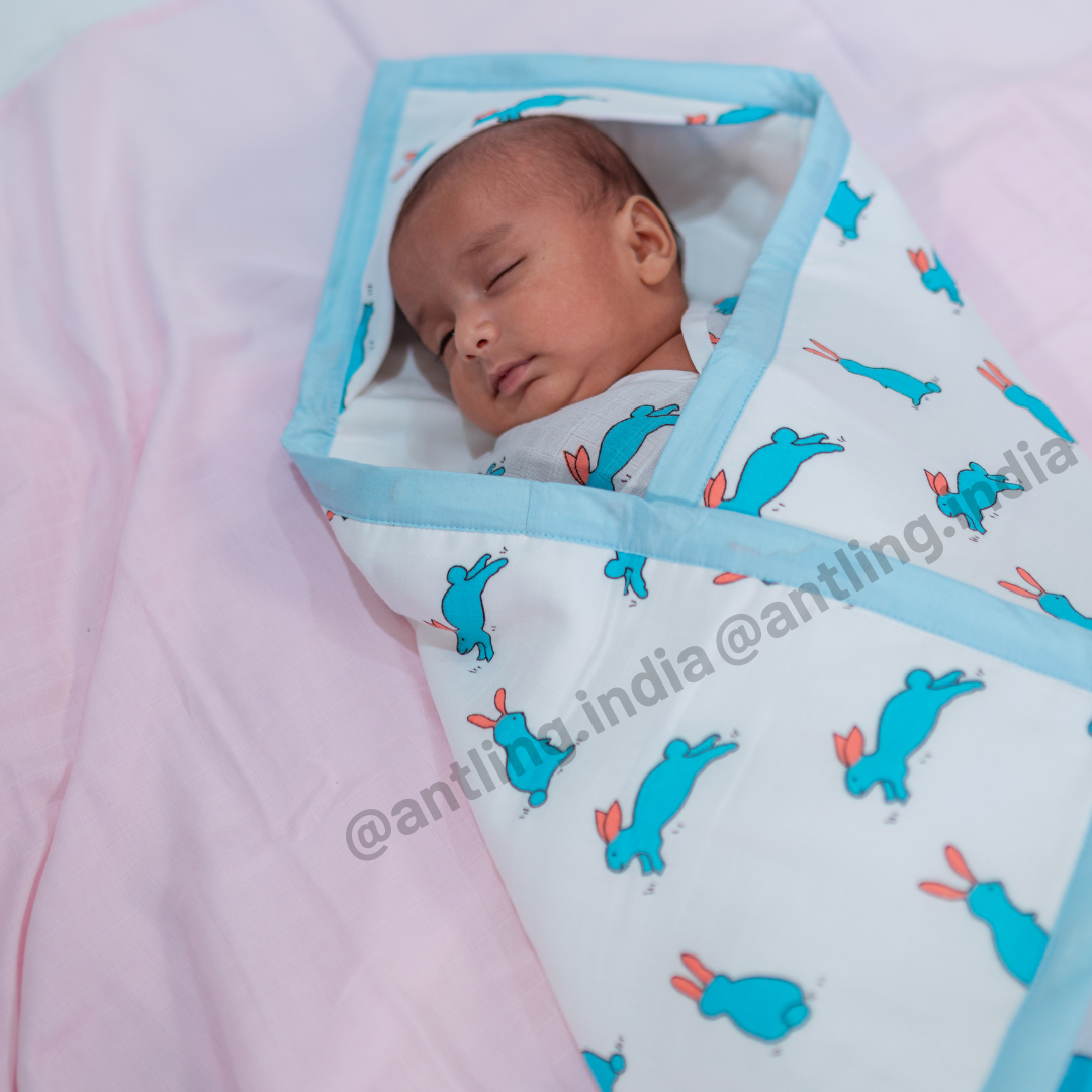 Generously sized, Anting Receiving Blanket is made of 8 layers of pure muslin cotton. It is safe for your fresh-to-the-world little ones. The receiving blanket is breathable and keeps the baby warm & cozy giving them the comfort of the womb. The Antling Cotton Baby blanket is favorably light-weighted and is also travel-friendly. The blanket is multi-faceted, and you can use it while nursing, nappy-changing, and doing various baby care tasks.